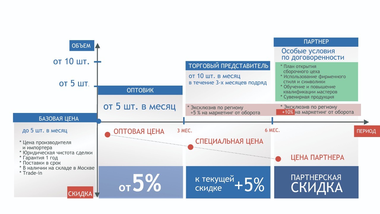 При заказе от 10 комплектов ежемесячно в течение 3-х месяцев подряд вы получаете следующие преимущества Торгового представителя: